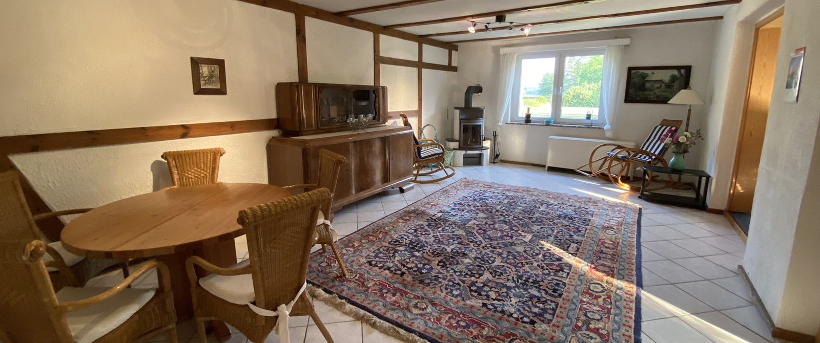 Große gemeinsame Küche, großes Ess- & Kaminzimmer für alle zusammen.